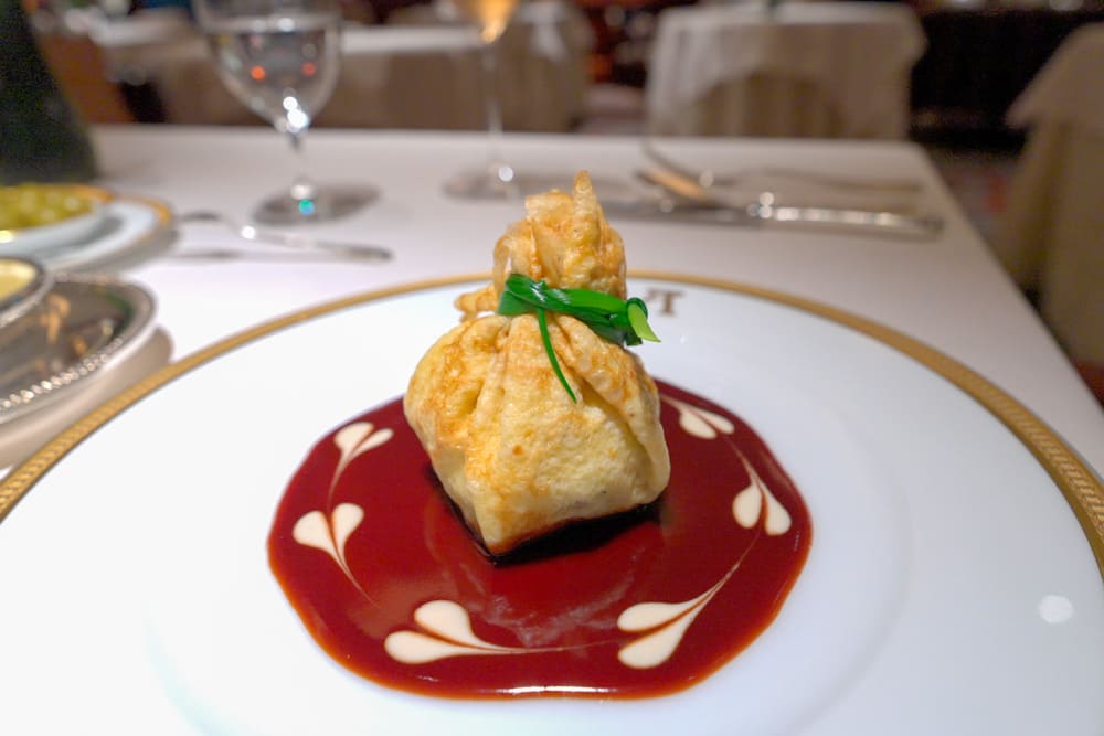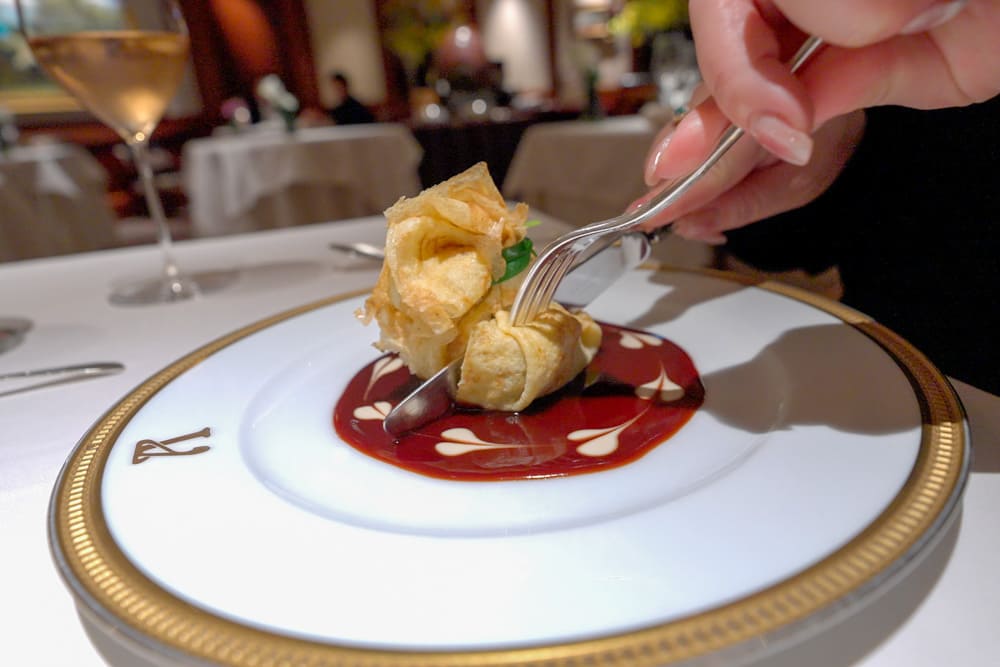 クレープ生地の中に丁寧に包み込まれた、手の込んだ前菜。