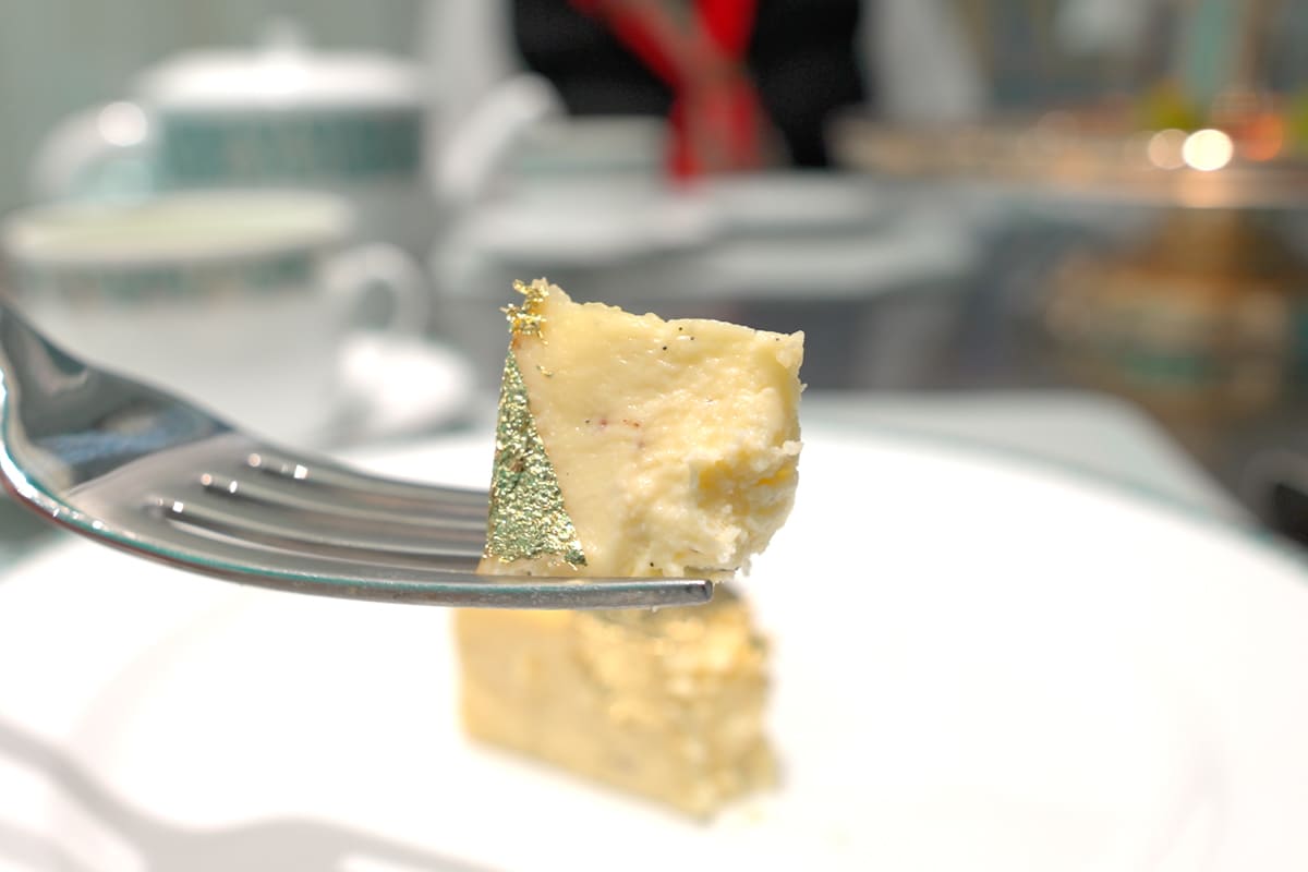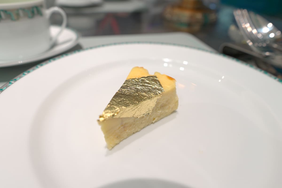 金箔の乗った小さなチーズケーキ。