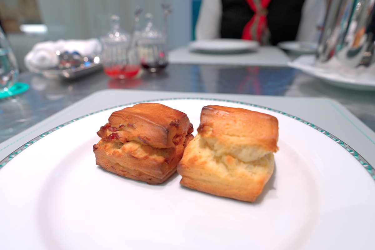 焼き立てのプレーンスコーンとクランベリースコーン。