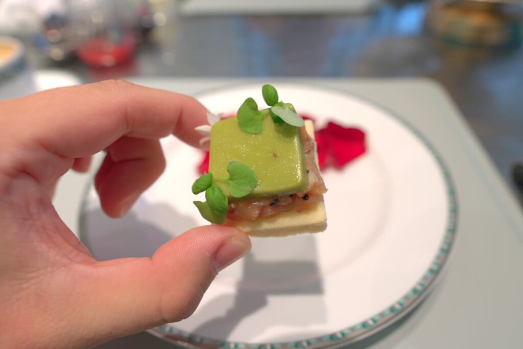 まるで美術品のように美しいカニのサンドウィッチ。