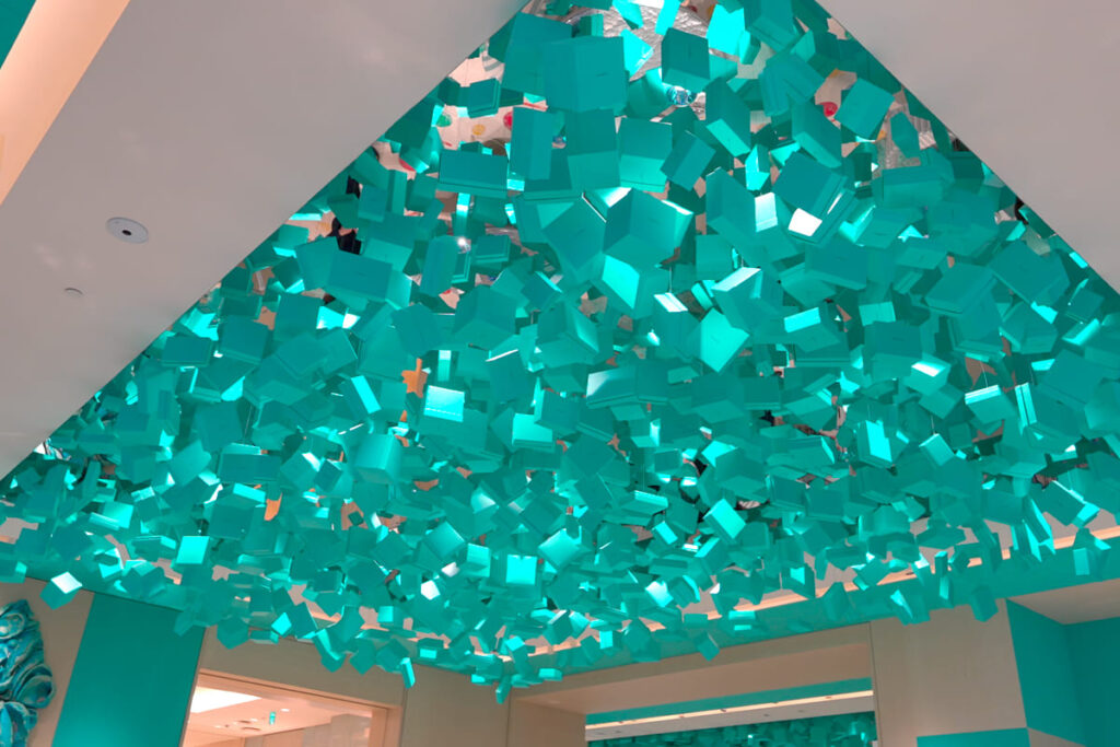 店内に足を踏み入れると、まず目に飛び込んでくるのが“ティファニーブルー”の世界。