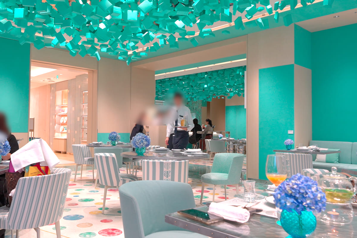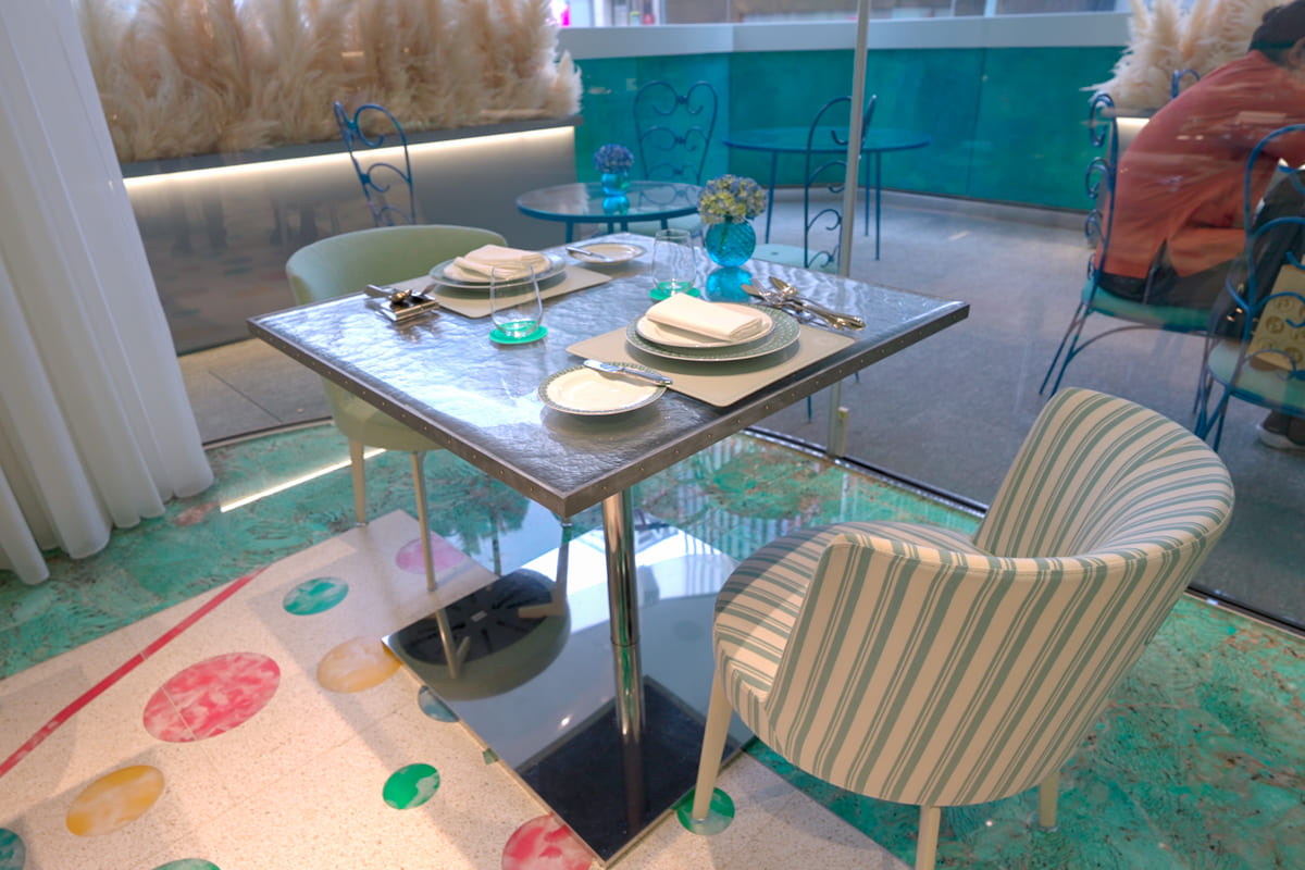 このカフェは、ティファニーのアジア最大級の旗艦店「ティファニー銀座ビル」の一角に設けられたもので、ブランドのラグジュアリー、アート、建築、美食を融合させた“体験型スペース”として注目を浴びています。
