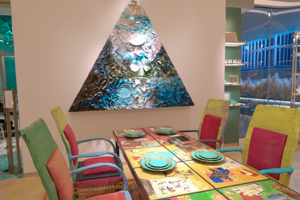 空間にはアート作品やフラワーインスタレーションも配されており、ただのカフェではなく“デザイン/体験”として訪れる価値があります。